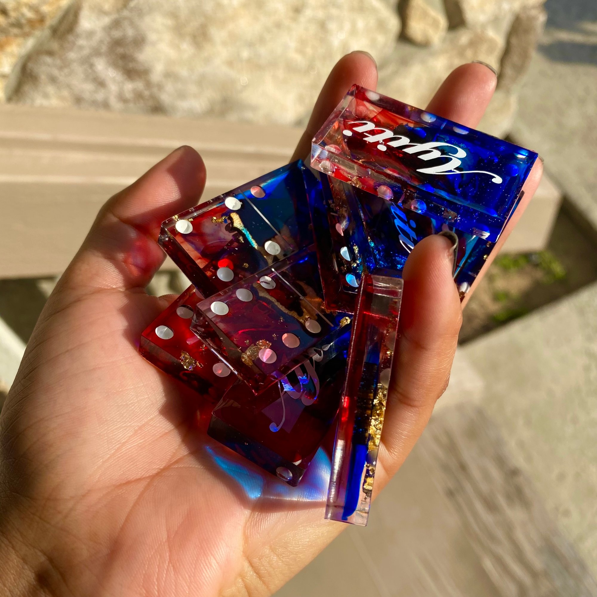 Handmade resin domino set inspired by the colors of Haiti šš¹