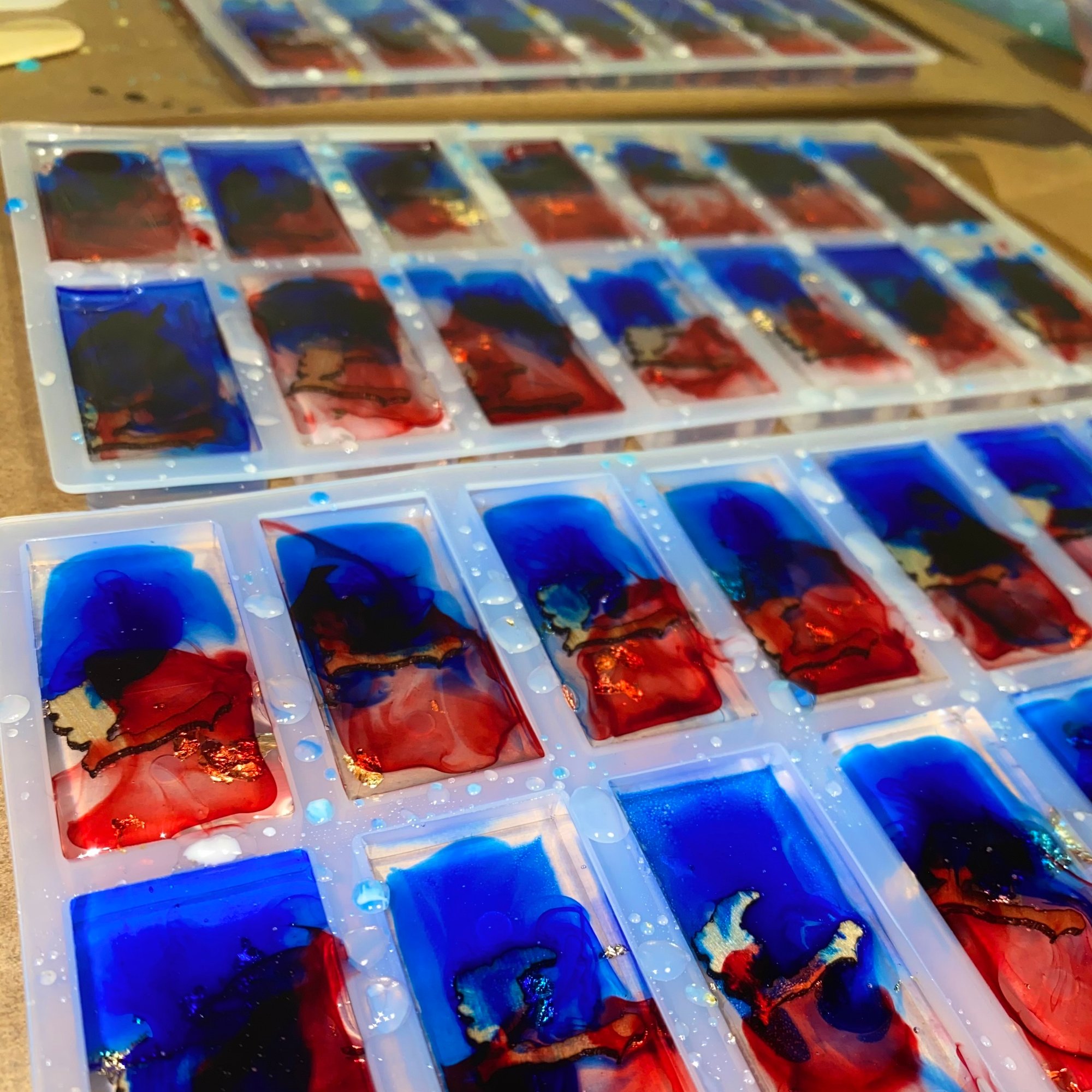 Crafted one piece at a time using epoxy resin, mica pigments, and gold foil.
