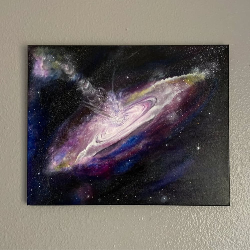 An acrylic nebula painted in layered light and color against a dark field of space. Soft blends create depth and movement, capturing the quiet expansion of something forming.