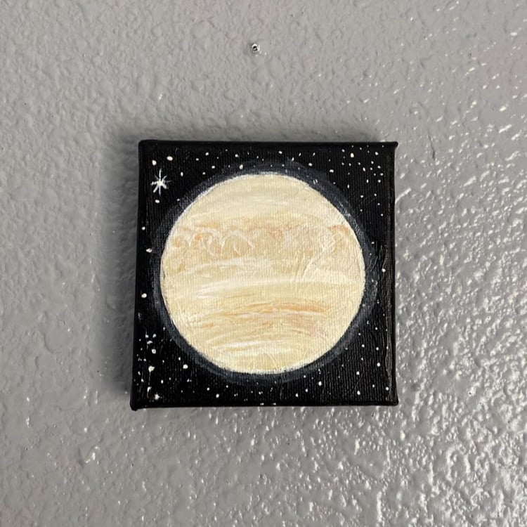 A small acrylic painting of Venus set against a quiet night sky. Soft warm tones layered gently to capture the glow of the planet in stillness.